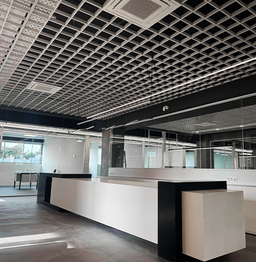 Οι κυψελωτές μεταλλικές ψευδοροφές, συγκεκριμένα, επιλέχθηκαν όχι μόνο για την υψηλή αισθητική τους, αλλά και για τον κρίσιμο ρόλο που παίζουν στη βελτίωση του εξαερισμού και την ακουστική του χώρου . Οι οπές τους εξασφαλίζουν την ανεμπόδιστη διέλευση του αέρα, παρέχοντας καλύτερη ποιότητα εσωτερικού περιβάλλοντος.
