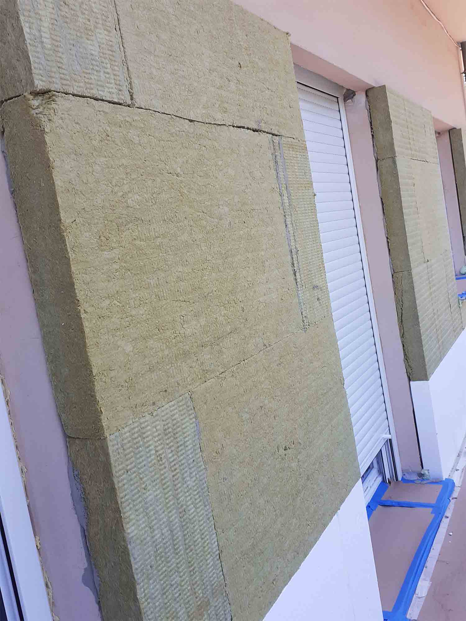 - Προσεκτική προετοιμασία της επιφάνειας της πρόσοψης, με καθαρισμό από σκόνες και σαθρά υλικά.